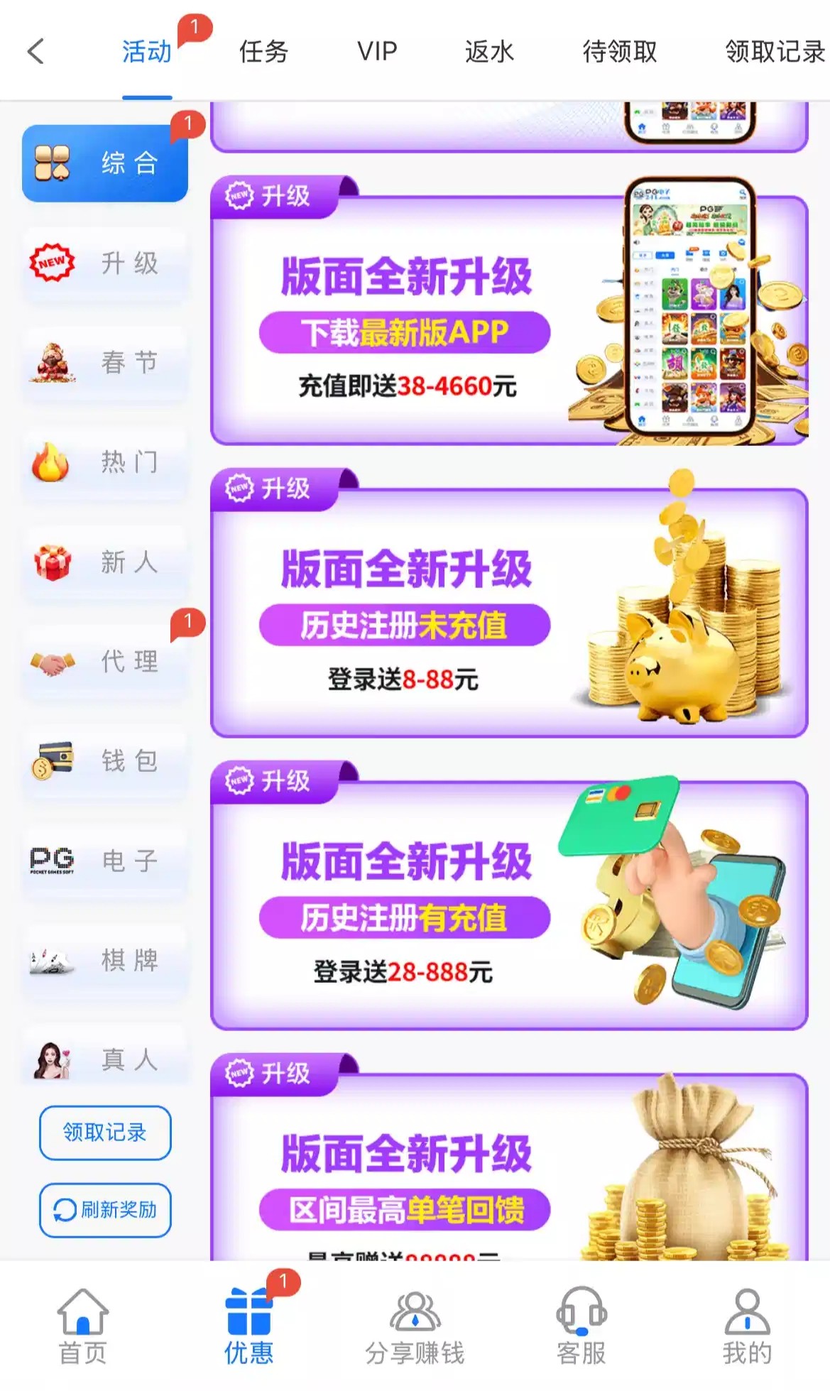 有号的兄弟可以登入上领取一下这个平台升级回馈彩金没充值过也有的