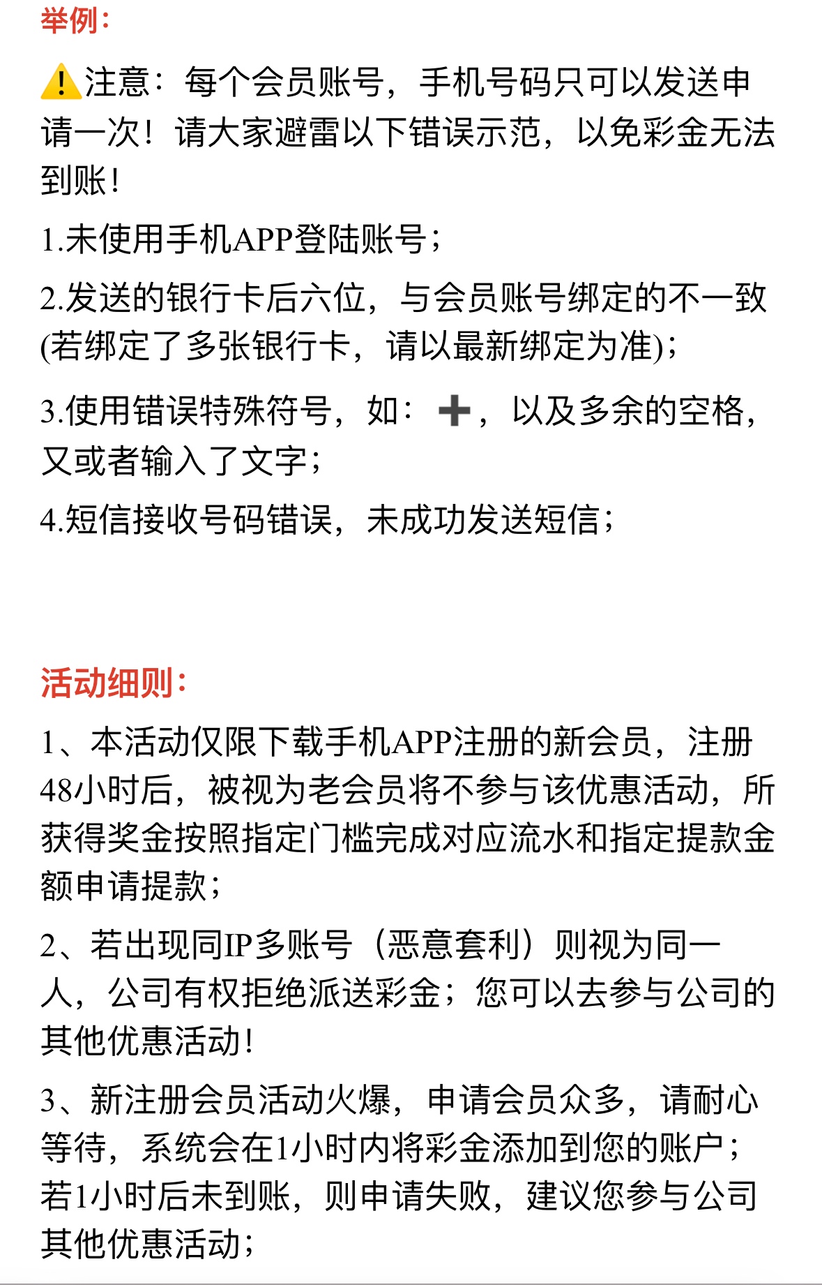 注册账号下载APP登入账号绑定号银行卡,仅限:PG电子,10倍流水,发短信的手机号:19140525381,短信内容是账号+银行卡后六位数,查IP,注册满一周还送7彩金