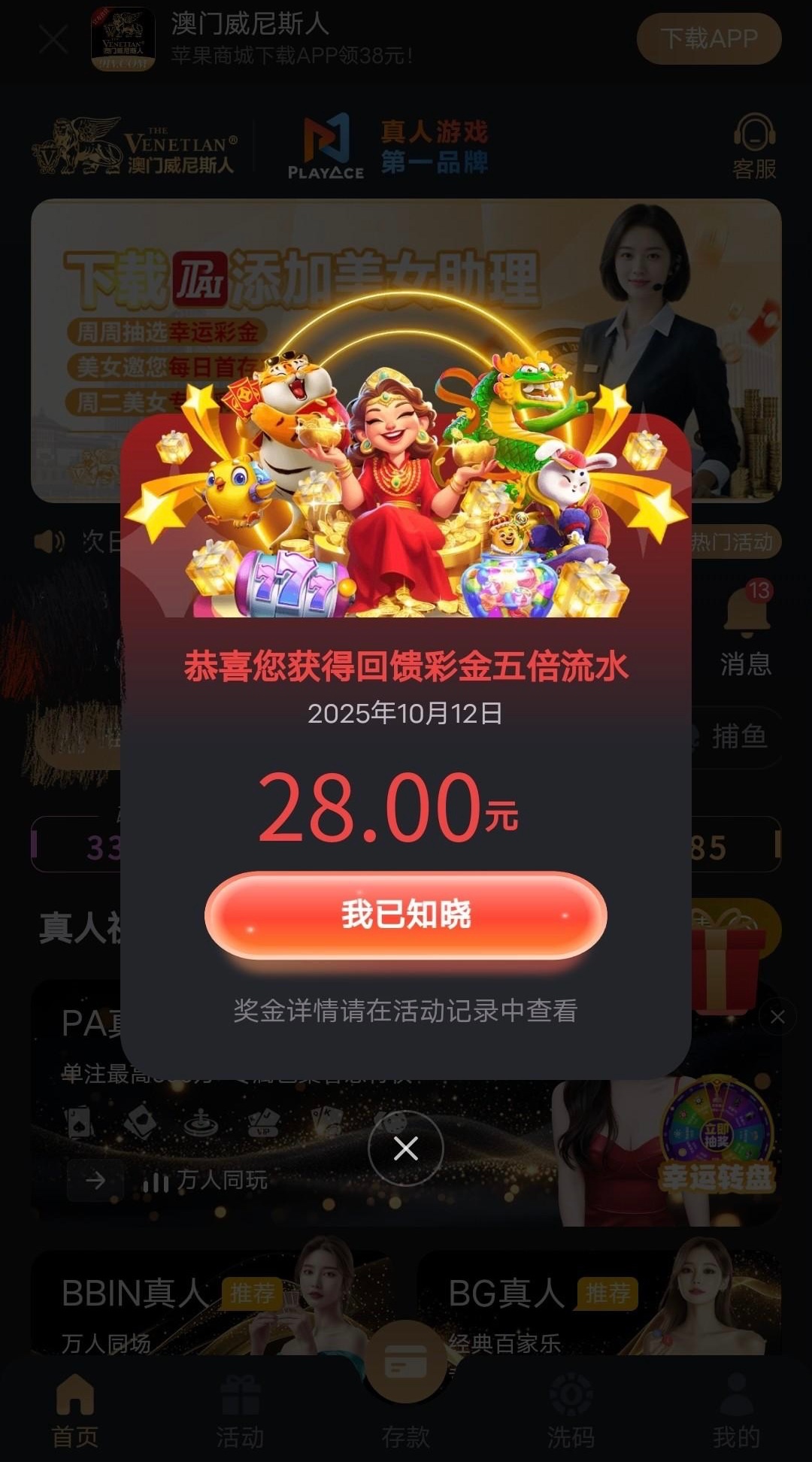 有历史充值过的兄弟可以登入看看有没有,彩金5倍流水