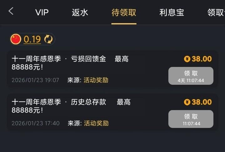 有号的兄弟可以登入上看一下优惠里有没有彩金领取