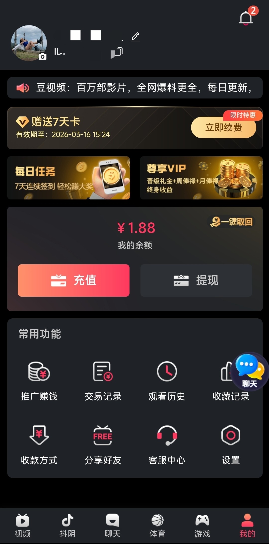 下载APP登入上在每日任务里面签到,1.88-7.88每周重置一次,首次提款可能要提银行卡